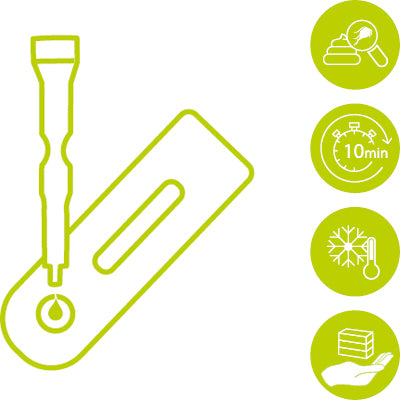 DiagnosicSchnelltest zum Nachweis von Giardien. Testergebnis innerhalb von 10 Minuten.